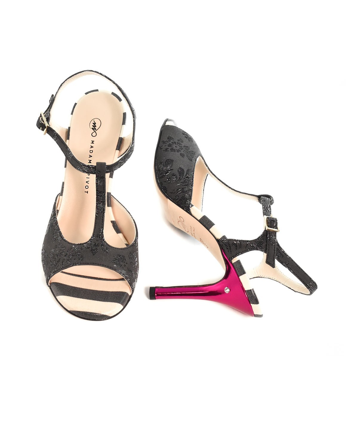 / FEDRA Black and Ivory Fabric & Fuchsia Laminated Leather